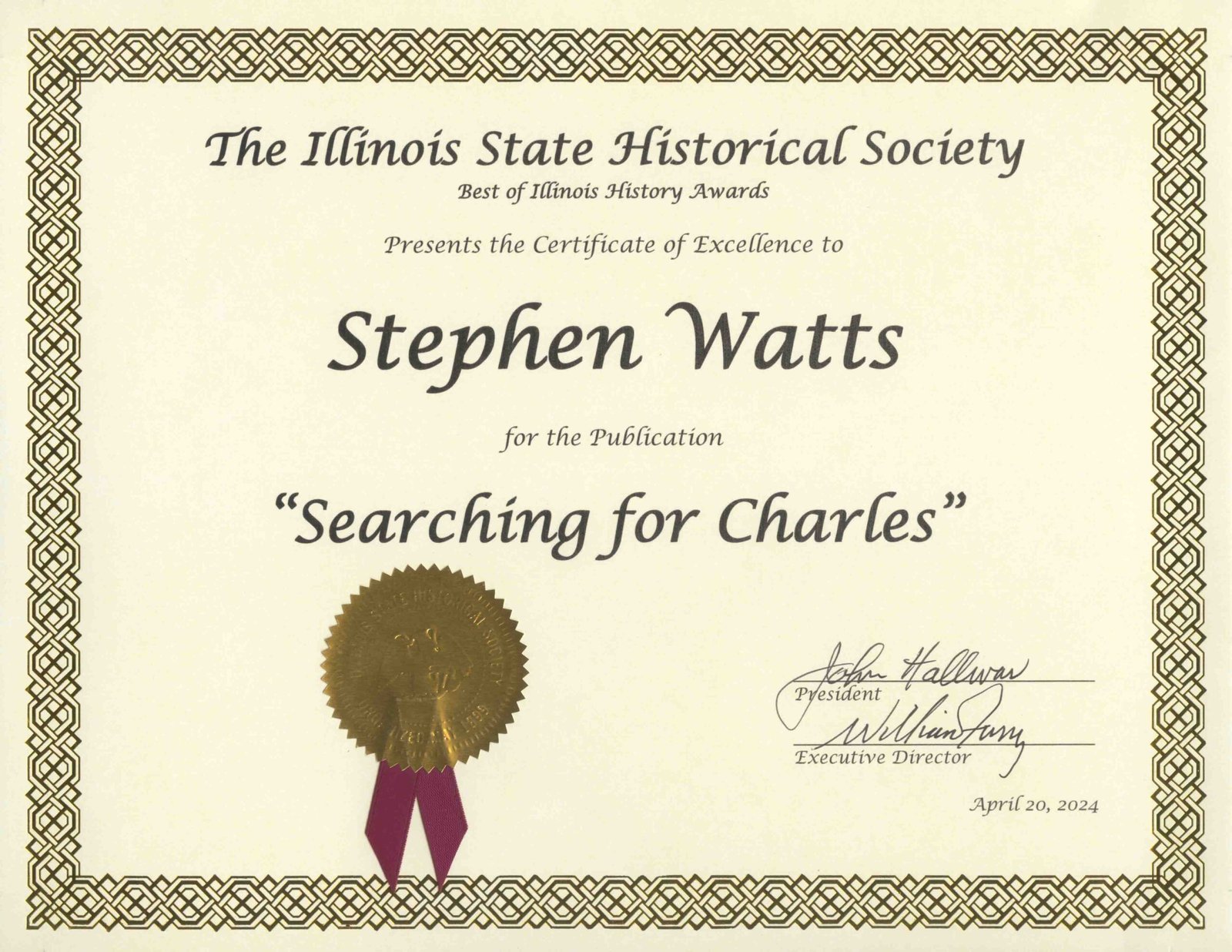 Searching for Charles: The Untold Legacy of an Immigrant’s American Adventure by Stephen Watts. Published 2022 by Houndstooth Press. 579 pages.